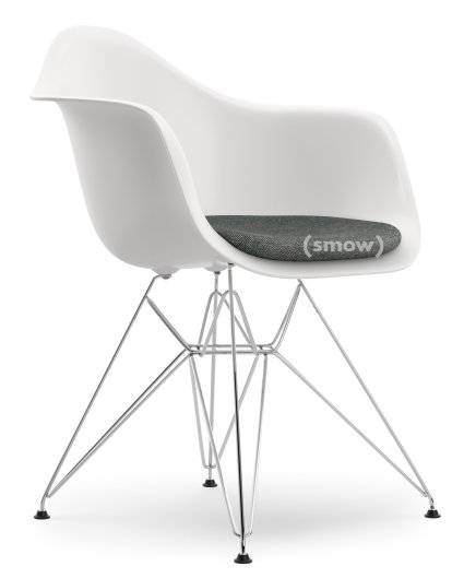 Eames Plastic Armchair RE DAR, Weiß non-RE, Mit Sitzpolster, Nero / elfenbein, Standardhöhe - 43 cm, Verchromt