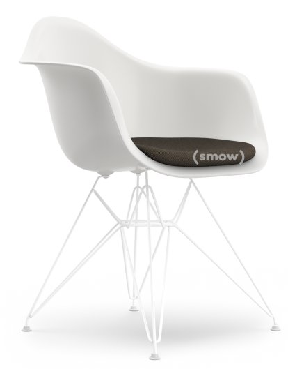 Eames Plastic Armchair RE DAR, Weiß non-RE, Mit Sitzpolster, Warmgrey / moorbraun, Standardhöhe - 43 cm, Beschichtet weiß