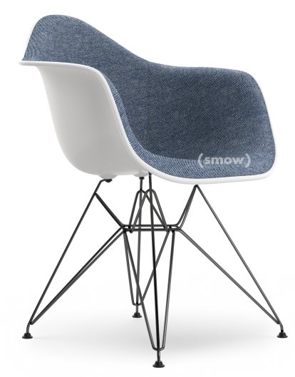 Eames Plastic Armchair RE DAR, Weiß non-RE, Mit Vollpolsterung, Dunkelblau / elfenbein, Standardhöhe - 43 cm, Beschichtet basic dark
