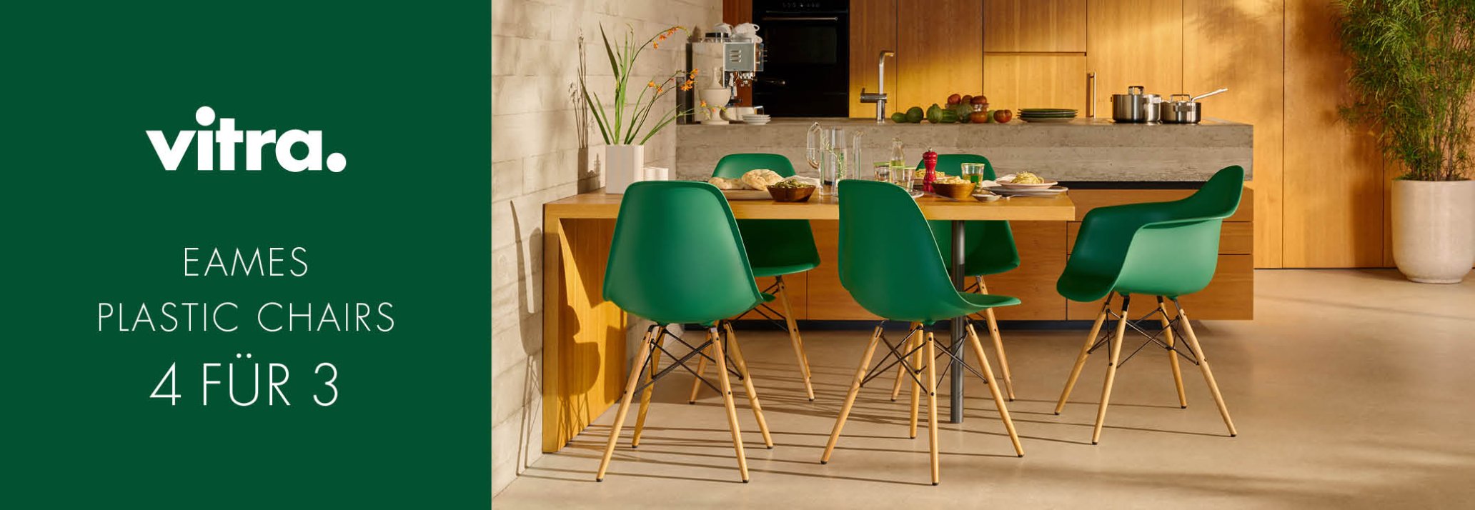Heute der verlässliche Klassiker beim Einrichten mit Designerstühlen, galt der Vitra DAR von Ray und Charles Eames in den 1950er Jahren als absolutes Novum. Mit der einteiligen Kunststoffschale, die mit verschiedenen Untergestellen kombiniert werden kann, waren die Eames Plastic Armchairs und Side Chairs nicht nur die ersten Kunststoffstühle, die seriell hergestellt werden konnten, sondern auch wahre Multifunktionswunder. Seit 2024 fertigt Vitra die Sitzschalen der Eames Plastic Chairs aus ressourcenschonendem Recyclingmaterial.