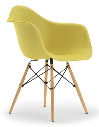 Eames Plastic Armchair RE DAW, Senf, Ohne Polsterung, Ohne Polsterung, Standardhöhe - 43 cm, Ahorn dunkel
