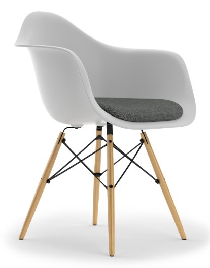 Eames Plastic Armchair RE DAW, Cotton white, Mit Sitzpolster, Nero / elfenbein, Standardhöhe - 43 cm, Esche honigfarben