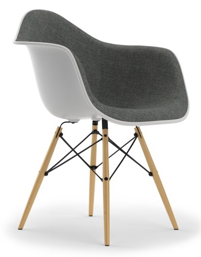 Eames Plastic Armchair RE DAW Cotton white|Mit Vollpolsterung|Nero / elfenbein|Standardhöhe - 43 cm|Ahorn gelblich