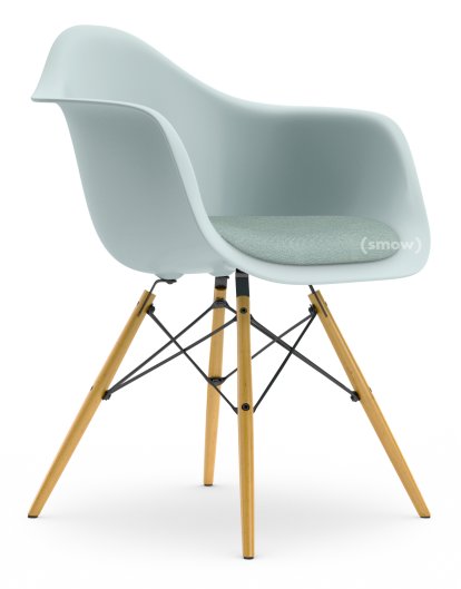 Eames Plastic Armchair RE DAW, Eisgrau, Mit Sitzpolster, Eisblau / elfenbein, Standardhöhe - 43 cm, Ahorn gelblich