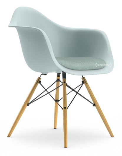 Eames Plastic Armchair RE DAW, Eisgrau, Mit Sitzpolster, Eisblau / elfenbein, Standardhöhe - 43 cm, Esche honigfarben