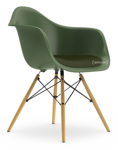 Eames Plastic Armchair RE DAW, Forest, Mit Sitzpolster, Nero / forest, Standardhöhe - 43 cm, Esche honigfarben
