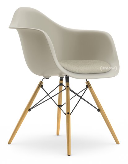 Eames Plastic Armchair RE DAW, Kieselstein, Mit Sitzpolster, Warmgrey / elfenbein, Standardhöhe - 43 cm, Esche honigfarben