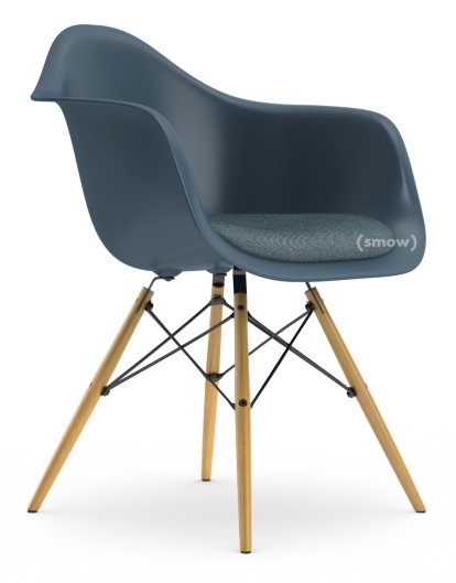 Eames Plastic Armchair RE DAW, Meerblau, Mit Sitzpolster, Eisblau / moorbraun, Standardhöhe - 43 cm, Esche honigfarben