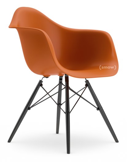 Eames Plastic Armchair RE DAW, Rostorange, Ohne Polsterung, Ohne Polsterung, Standardhöhe - 43 cm, Ahorn schwarz