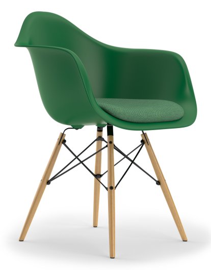 Eames Plastic Armchair RE DAW, Smaragd, Mit Sitzpolster, Grün / elfenbein, Standardhöhe - 43 cm, Esche honigfarben