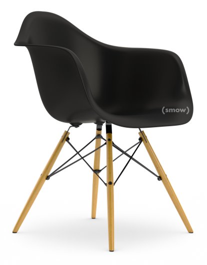 Eames Plastic Armchair RE DAW, Tiefschwarz, Ohne Polsterung, Ohne Polsterung, Standardhöhe - 43 cm, Ahorn gelblich