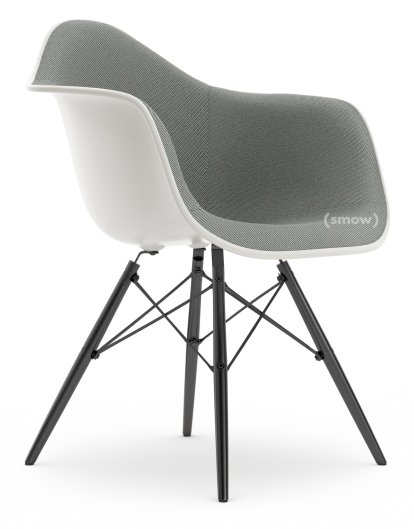 Eames Plastic Armchair RE DAW, Weiß non-RE, Mit Vollpolsterung, Nero / elfenbein, Standardhöhe - 43 cm, Ahorn schwarz