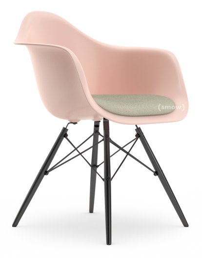 Eames Plastic Armchair RE DAW, Zartrosé, Mit Sitzpolster, Warmgrey / elfenbein, Standardhöhe - 43 cm, Ahorn schwarz