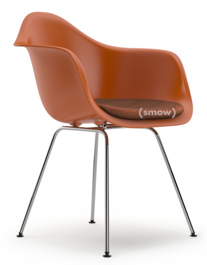 Eames Plastic Armchair RE DAX, Rostorange, Mit Sitzpolster, Cognac / elfenbein, Standardhöhe - 43 cm, Verchromt