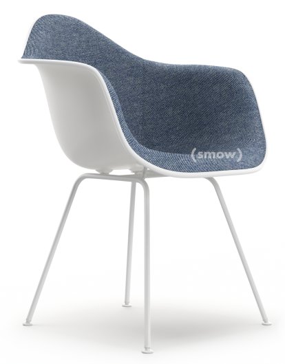 Eames Plastic Armchair RE DAX Weiß non-RE|Mit Vollpolsterung|Dunkelblau / elfenbein|Standardhöhe - 43 cm|Beschichtet weiß