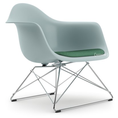 Eames Plastic Armchair RE LAR, Eisgrau, Sitzpolster mint / forest, Verchromt