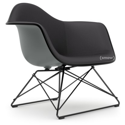 Eames Plastic Armchair RE LAR, Granitgrau, Vollpolsterung dunkelgrau, Beschichtet basic dark
