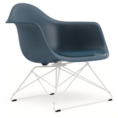 Eames Plastic Armchair RE LAR, Meerblau, Sitzpolster meerblau / dunkelgrau, Beschichtet weiß