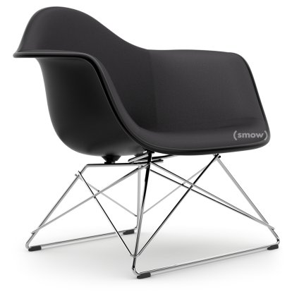 Eames Plastic Armchair RE LAR, Tiefschwarz, Vollpolsterung dunkelgrau, Verchromt