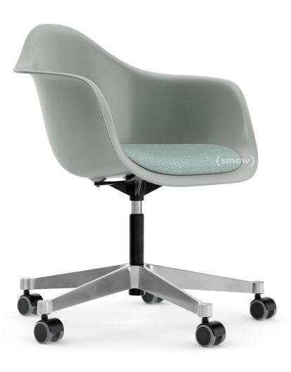 Eames Plastic Armchair RE PACC, Hellgrau, Mit Sitzpolster, Eisblau / elfenbein