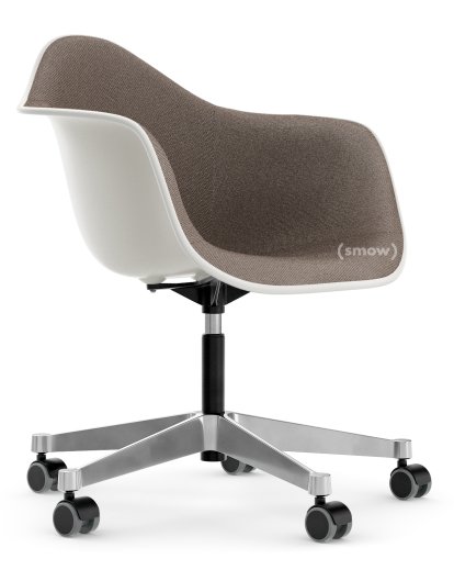 Eames Plastic Armchair RE PACC Weiß non-RE|Mit Vollpolsterung|Warmgrey / moorbraun