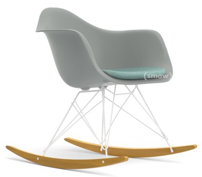 Eames Plastic Armchair RE RAR mit Polsterung, Hellgrau, Mit Sitzpolster, Eisblau / elfenbein, Ohne Keder, Weiß/Ahorn gelblich
