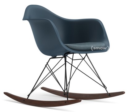 Eames Plastic Armchair RE RAR mit Polsterung, Meerblau, Mit Sitzpolster, Eisblau / moorbraun, Ohne Keder, Basic Dark/Ahorn dunkel