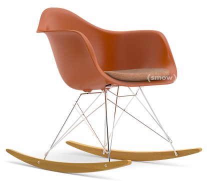 Eames Plastic Armchair RE RAR mit Polsterung, Rostorange, Mit Sitzpolster, Cognac / elfenbein, Ohne Keder, Verchromt/Ahorn gelblich