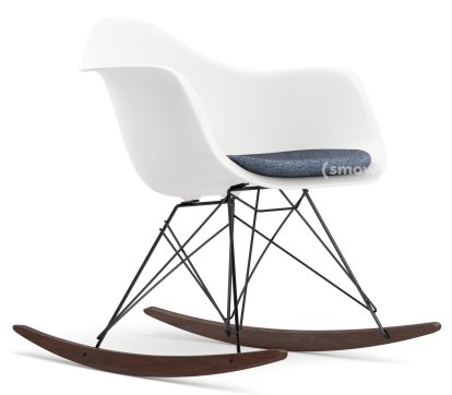 Eames Plastic Armchair RE RAR mit Polsterung, Weiß non-RE, Mit Sitzpolster, Dunkelblau / elfenbein, Ohne Keder, Basic Dark/Ahorn dunkel