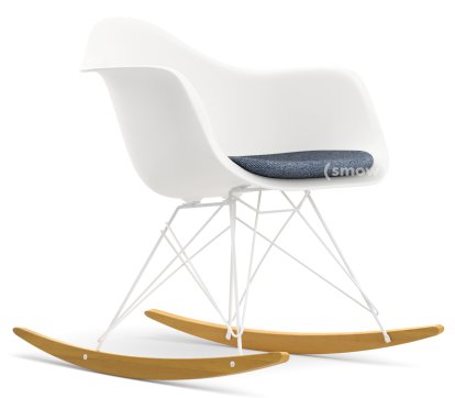 Eames Plastic Armchair RE RAR mit Polsterung, Weiß non-RE, Mit Sitzpolster, Dunkelblau / elfenbein, Ohne Keder, Weiß/Ahorn gelblich