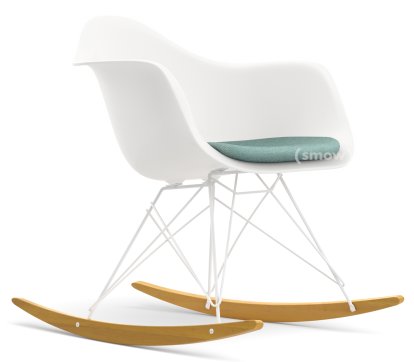 Eames Plastic Armchair RE RAR mit Polsterung, Weiß non-RE, Mit Sitzpolster, Eisblau / elfenbein, Ohne Keder, Weiß/Ahorn gelblich