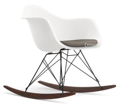 Eames Plastic Armchair RE RAR mit Polsterung, Weiß non-RE, Mit Sitzpolster, Warmgrey / moorbraun, Ohne Keder, Basic Dark/Ahorn dunkel