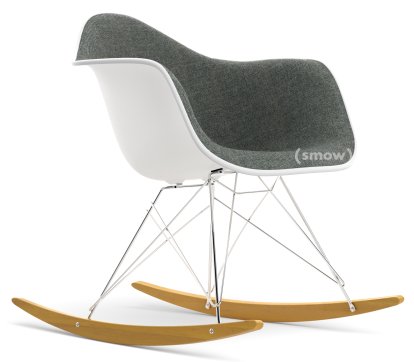 Eames Plastic Armchair RE RAR mit Polsterung, Weiß non-RE, Mit Vollpolsterung, Nero / elfenbein, Weiß, Verchromt/Ahorn gelblich