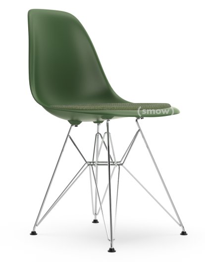 Eames Plastic Side Chair RE DSR, Forest, Mit Sitzpolster, Elfenbein / forest, Standardhöhe - 43 cm, Verchromt
