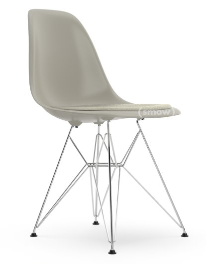 Eames Plastic Side Chair RE DSR, Kieselstein, Mit Sitzpolster, Warmgrey / elfenbein, Standardhöhe - 43 cm, Verchromt