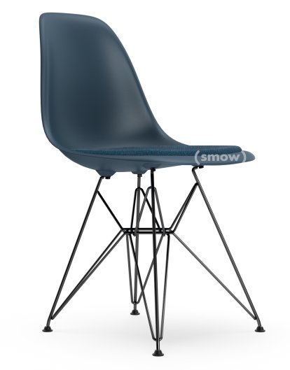 Eames Plastic Side Chair RE DSR Meerblau|Mit Sitzpolster|Meerblau / dunkelgrau|Standardhöhe - 43 cm|Beschichtet basic dark