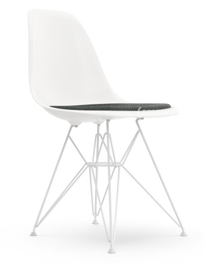 Eames Plastic Side Chair RE DSR Weiß non-RE|Mit Sitzpolster|Nero / elfenbein|Standardhöhe - 43 cm|Beschichtet weiß