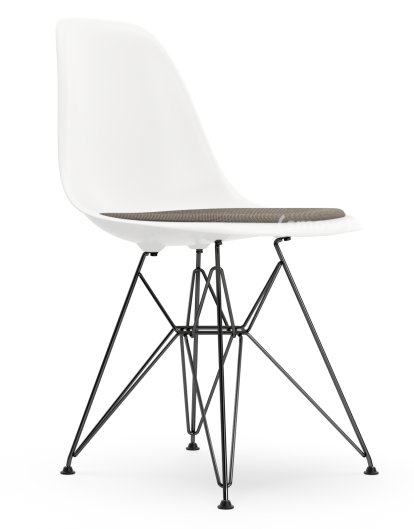 Eames Plastic Side Chair RE DSR, Weiß non-RE, Mit Sitzpolster, Warmgrey / moorbraun, Standardhöhe - 43 cm, Beschichtet basic dark