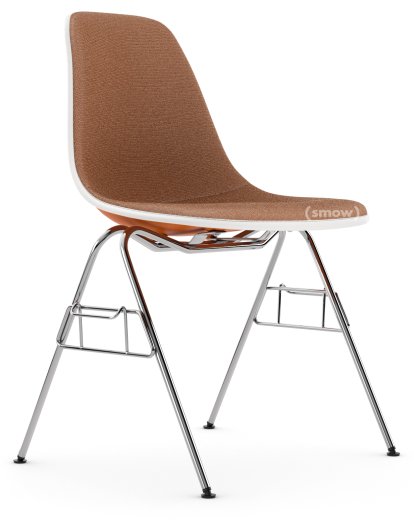 Eames Plastic Side Chair RE DSS / DSS-N, Rostorange, Mit Vollpolsterung, Cognac / elfenbein, Mit Reihenverbindung (DSS)
