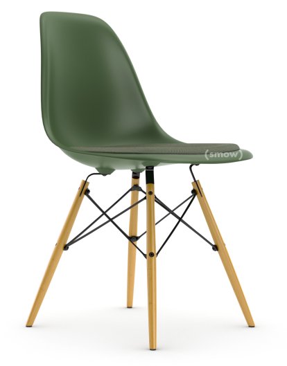 Eames Plastic Side Chair RE DSW Forest|Mit Sitzpolster|Elfenbein / forest|Standardhöhe - 43 cm|Ahorn gelblich