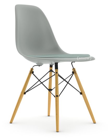 Eames Plastic Side Chair RE DSW Hellgrau|Mit Sitzpolster|Eisblau / elfenbein|Standardhöhe - 43 cm|Ahorn gelblich