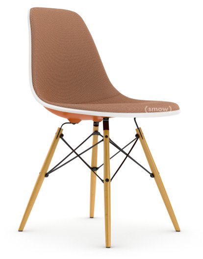 Eames Plastic Side Chair RE DSW, Rostorange, Mit Vollpolsterung, Cognac / elfenbein, Standardhöhe - 43 cm, Ahorn gelblich