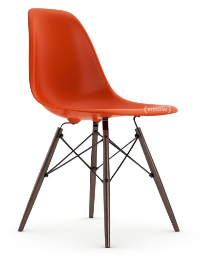 Eames Plastic Side Chair RE DSW, Rot (poppy red), Ohne Polsterung, Ohne Polsterung, Standardhöhe - 43 cm, Ahorn dunkel
