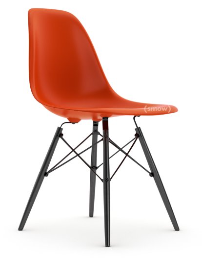 Eames Plastic Side Chair RE DSW Rot (poppy red)|Ohne Polsterung|Ohne Polsterung|Standardhöhe - 43 cm|Ahorn schwarz