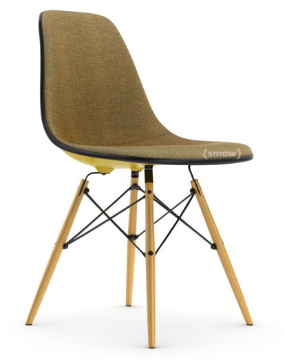 Eames Plastic Side Chair RE DSW Senf|Mit Vollpolsterung|Senf / dunkelgrau|Standardhöhe - 43 cm|Esche honigfarben