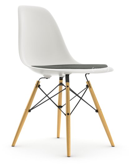 Eames Plastic Side Chair RE DSW Weiß non-RE|Mit Sitzpolster|Nero / elfenbein|Standardhöhe - 43 cm|Esche honigfarben