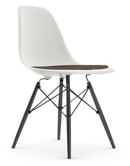 Eames Plastic Side Chair RE DSW Weiß non-RE|Mit Sitzpolster|Warmgrey / moorbraun|Standardhöhe - 43 cm|Ahorn schwarz