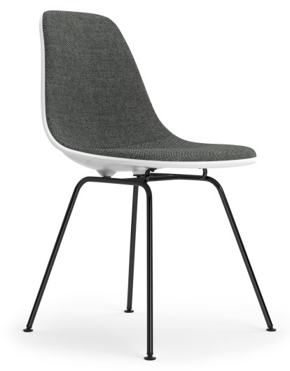 Eames Plastic Side Chair RE DSX, Cotton white, Mit Vollpolsterung, Nero / elfenbein, Standardhöhe - 43 cm, Beschichtet basic dark