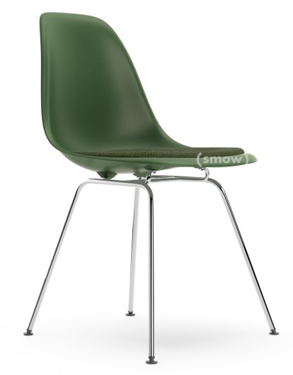 Eames Plastic Side Chair RE DSX, Forest, Mit Sitzpolster, Nero / forest, Standardhöhe - 43 cm, Verchromt