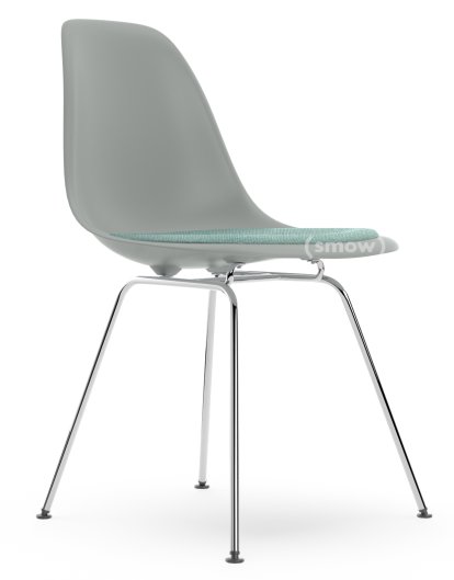 Eames Plastic Side Chair RE DSX, Hellgrau, Mit Sitzpolster, Eisblau / elfenbein, Standardhöhe - 43 cm, Verchromt